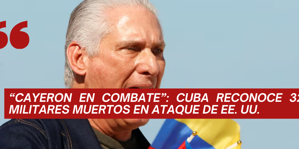 enero 5, 2026publicado por admin24 on enero 5, 2026categorias ActualidadPoliticaLa Habana admite bajas propias tras la ofensiva estadounidense en Venezuela32 cubanos muertos y dos días de duelo tras captura de Nicolás Maduro El gobierno de Cuba confirmó oficialmente que 32 militares y agentes de inteligencia […]